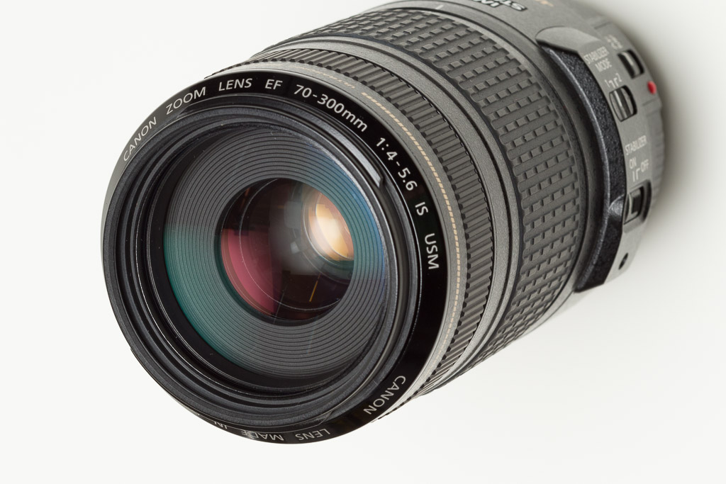 I was never too impressed with the build quality of the EF 70-300 ƒ/4-5.6 IS USM. It always felt very plastic, especially as I was used to all metal L-series zoom lenses. And optically it was never a very sharp lens (again not L-series). It suffers dreadfully from zoom creep. In fact, when photographing the lens for this page I could not show it in the 300mm position because it would instantly collapse under its own weight.