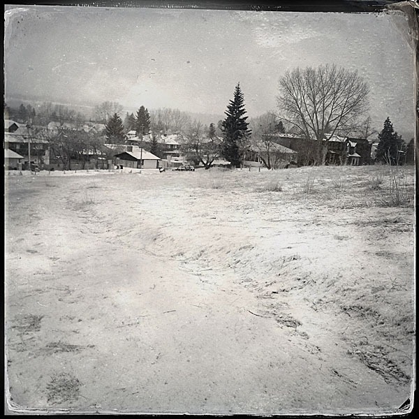 I have another on-going photographic series called Silver View in which I record the ever changing view out my living room window which looks out on a natural park. In those photographs the scene is often dominated by an interesting sky or atmospheric phenomenon (e.g., fog, a rainstorm, a snowstorm, or a dramatic sunrise), but always the sky is shown in relation to the land. The Silver View series is very much rooted in place. It is about recoding the view from one particular location.