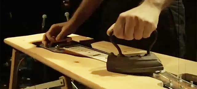 The stage on which L’Orchestre perform is strewn with over 100 items (in truth, pieces of junk) from which they coax sound with [pullthis]the subtlety of a golf club striking a frying pan[/pullthis] (one of the “instruments”) or boxing gloves pounding a piece of wood (another). By the end of the performance the stage is in shambles, the performers spent, and the audience converted.