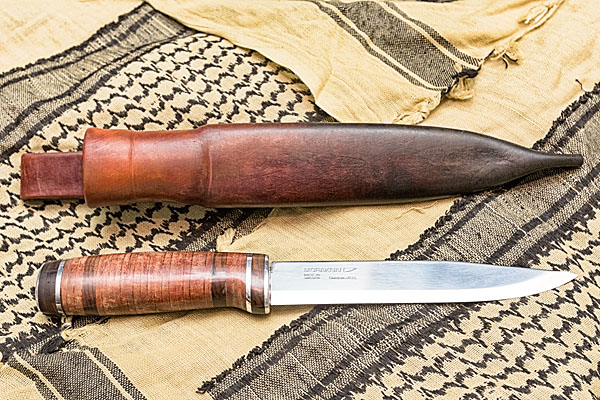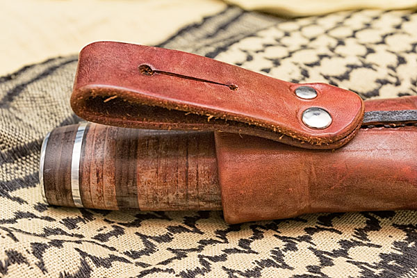 I like Roselli’s unique sheath configuration — very simple and secure. As with most Scandinavian knife sheaths, the leuku sits deep in the sheath and is held with simple friction. No fumbling with snaps with gloved hands in -30°C, and the knife is not going to just fall out on its own — an important consideration in a traditional culture where your knife is your only tool and the key to survival in many situations.